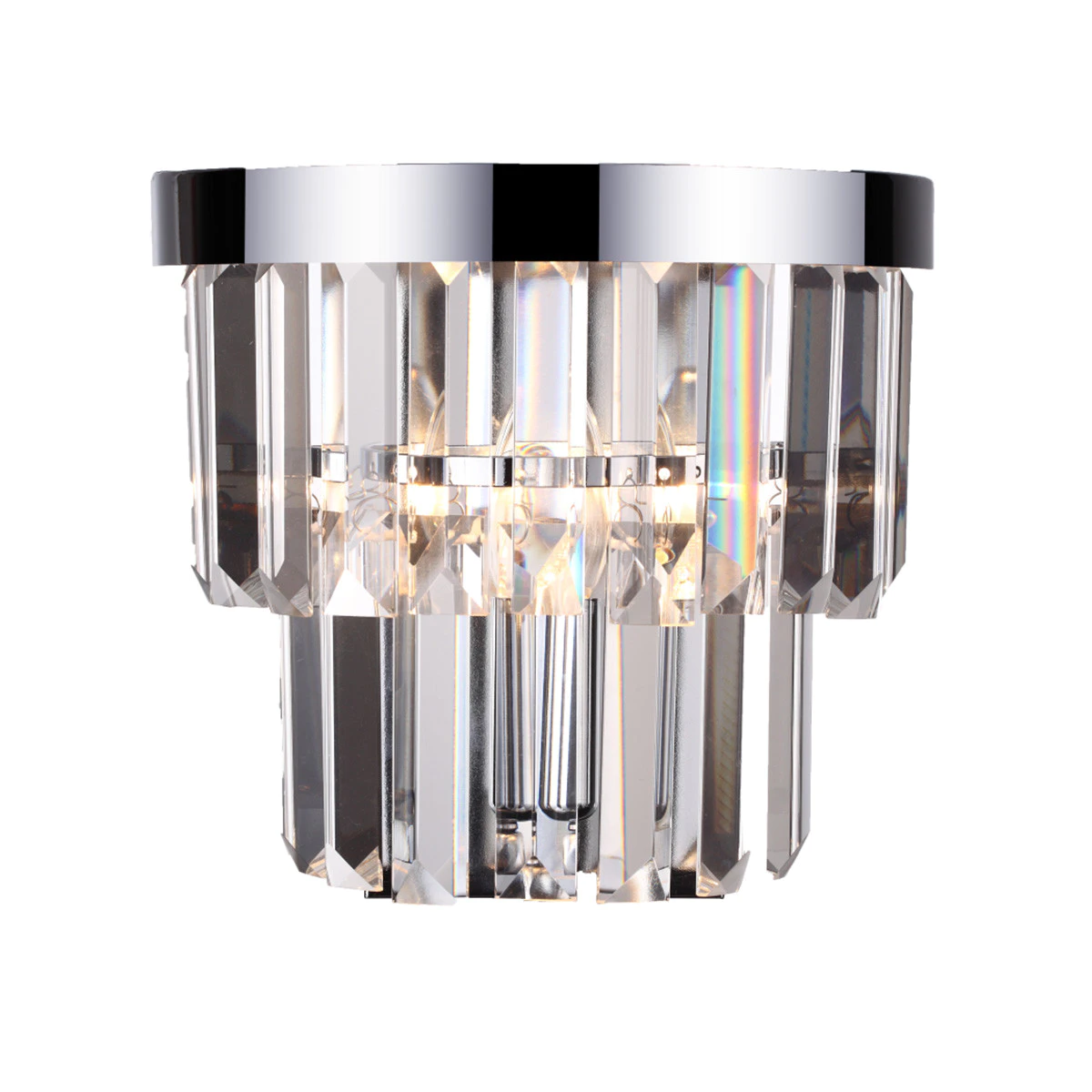 Aplica argintie cu sticlă transparentă colecția Vetro Light Prestige creează efecte de lumină captivante prin elementele cristalizate, transformând orice perete într-un accent decorativ sofisticat pentru livinguri și holuri elegante.