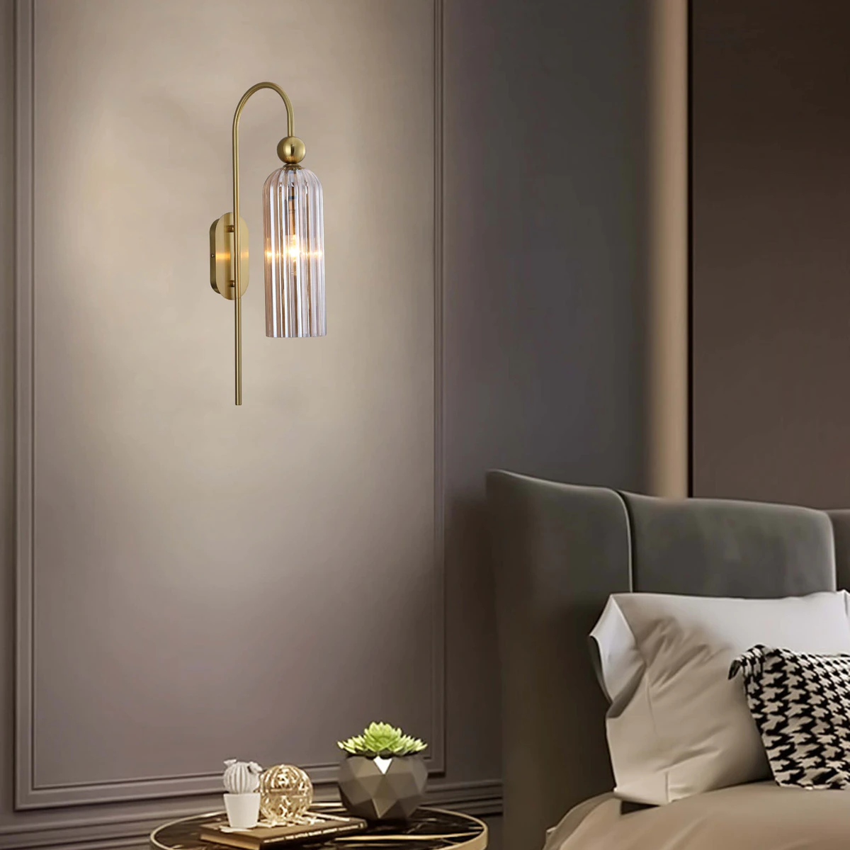 Produsul se adresează în mod special proprietarilor care caută o soluție de iluminat ambient pentru spații precum dormitoare, livinguri sau holuri. Prin orientarea în jos a luminii, aplica creează un con luminos controlat care nu deranjează, fiind ideală pentru zone de relaxare sau pentru accentuarea unor elemente decorative de pe perete. Finisajul auriu al structurii metalice se armonizează cu tendințele actuale de design interior care privilegiază materialele calde și textura sticlei.