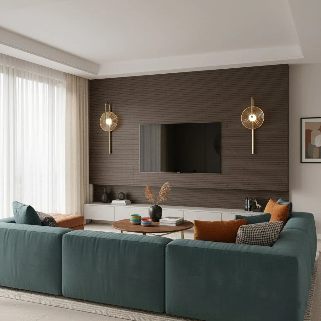 Versatilitatea acestei aplice se manifestă prin capacitatea sa de a se integra armonios în diverse concepte de design interior. În spațiile moderne, liniile curate și finisajele metalice accentuează caracterul contemporan al amenajării, în timp ce abajurul din sticlă striată adaugă o notă de eleganță discretă. Pentru amenajările clasice, nuanța chihlimbar și forma geometrică echilibrată completează mobilierul tradițional fără a crea contrast vizual.