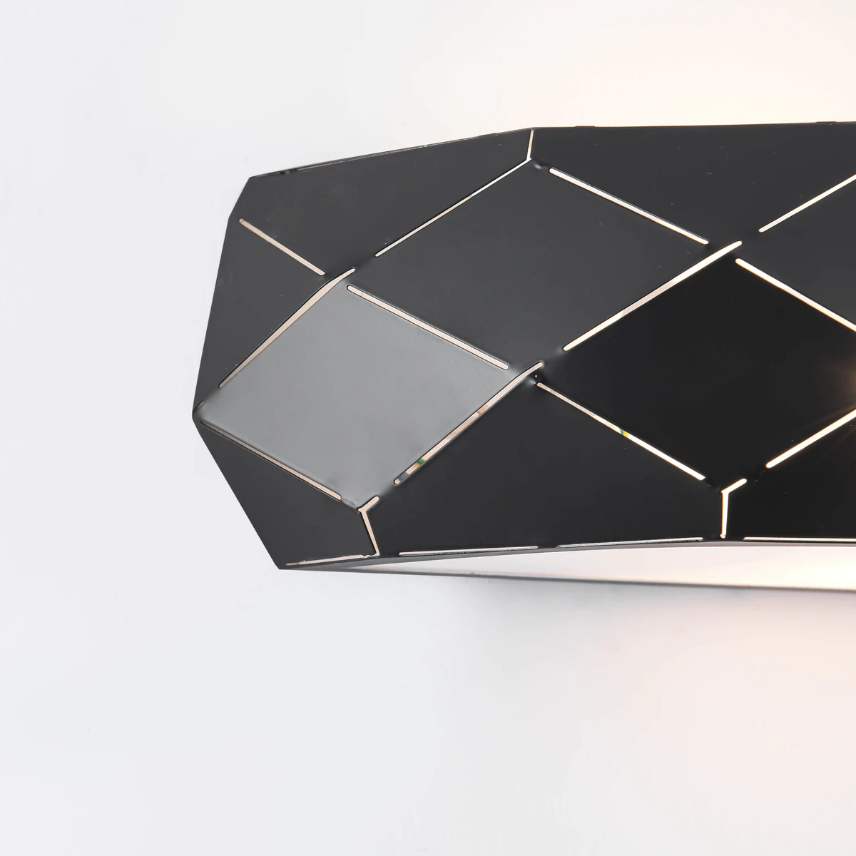 Designul geometric simplu al aplicei se integrează armonios în concepte de amenajare moderne, clasice sau glamour, datorită versatilității sale stilistice. Abajurul decorat cu tăieturi delicate creează efecte subtile de lumină, dispersând lumina uniform pe perete și în încăpere, transformând atmosfera dintr-una obișnuită într-una caldă și primitoare. Finisajul mat negru elimină reflexiile nedorite și asigură o prezență discretă, dar impactantă în ansamblul decorativ.
