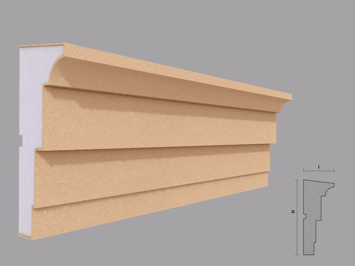 Braul decorativ pentru fațadă FP303 vine să completeze aspectul casei tale cu un element arhitectural clasic, care nu se demodează niciodată. Profilul în trepte creează un efect vizual plăcut, marcând distinct nivelurile clădirii sau punând în evidență anumite zone ale fațadei.
