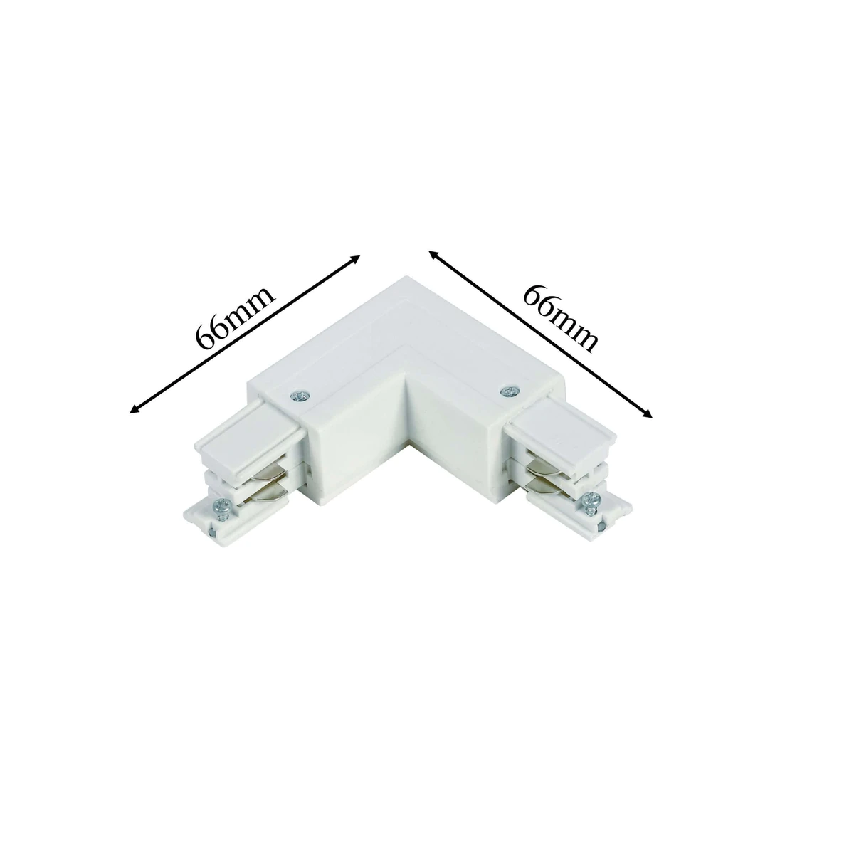 CONECTOR L 3F STÂNGA alb – este un conector intern pentru șinele de alimentare de culoare albă. Acesta ne permite să conectăm șinele de alimentare între ele, creând astfel forme variate. Interesant este că acest element, deși foarte mic, ne oferă posibilități imense de configurare. Prin intermediul său, putem crea șine de alimentare în formă de L. Există și alte forme de conectori care permit crearea unor șine în formă de T.