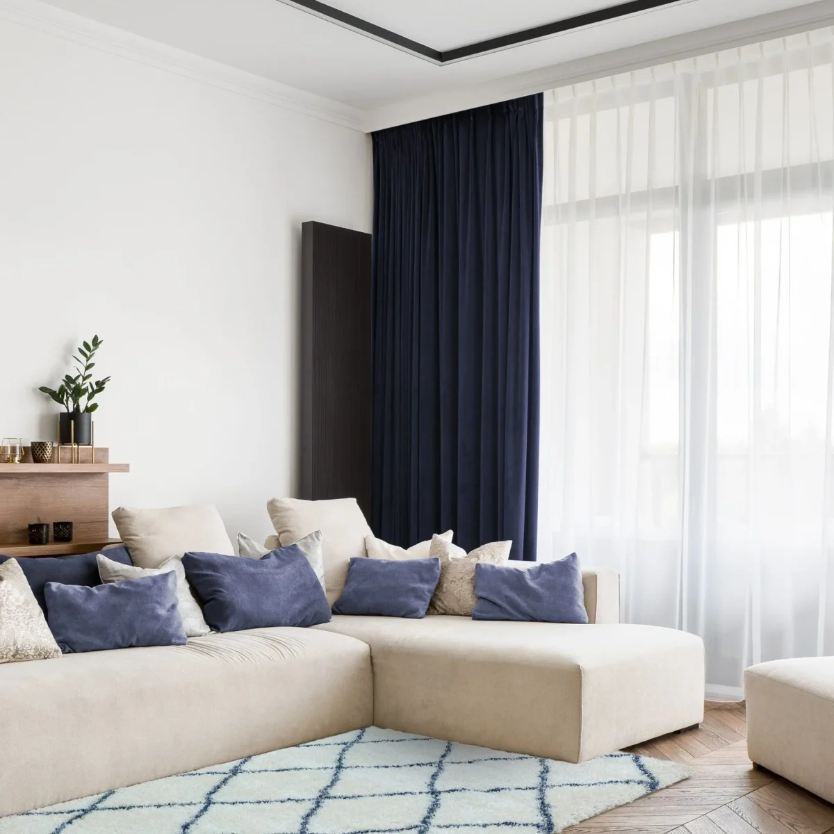 Textura shaggy de 50 mm creează o experiență tactilă deosebită, transformând fiecare pas într-o senzație de confort și căldură. Culoarea crem dominantă se armonizează natural cu mobilierul din lemn deschis, în timp ce accentele albastre aduc profunzime și personalitate spațiului. Acest covor funcționează ca un punct focal discret, care unifică elementele de decor fără să domine vizual camera.