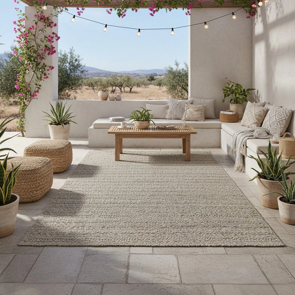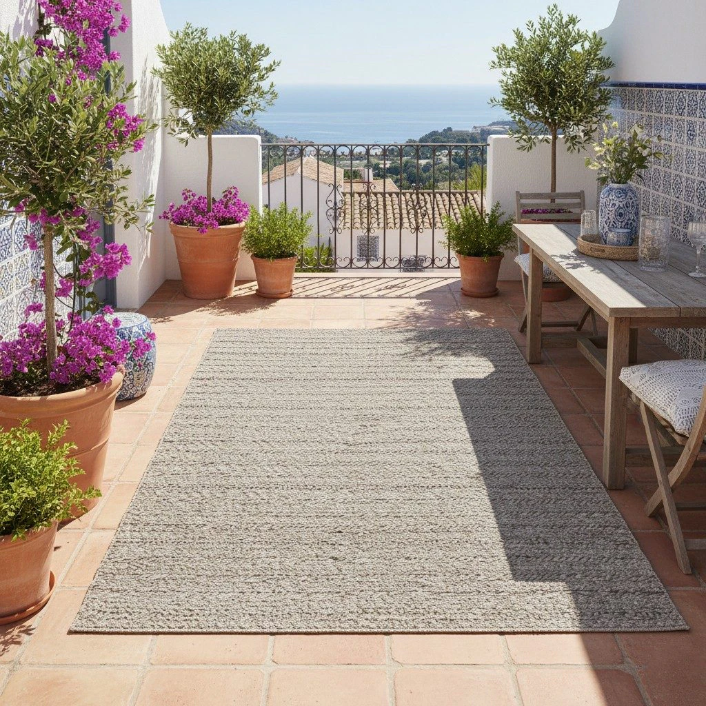 Alegerea covorului Grayson Taupe este o decizie fundamentată pe echilibrul dintre designul contemporan, rezistența materialelor și o versatilitate remarcabilă. Spre deosebire de covoarele tradiționale de exterior, care adesea sacrifică estetica pentru funcționalitate, acest model lucrat manual în India îmbină aspectul natural și plăcut la atingere al unei țesături de interior cu performanța tehnică necesară pentru a face față condițiilor din aer liber. Compoziția sa din 100% PET reciclat nu este doar o alegere responsabilă față de mediu, ci și garanția unei longevități superioare, materialul fiind intrinsec rezistent la razele UV, la umezeală și la dezvoltarea mucegaiului. Acest covor este soluția pentru cei care, conform feedback-ului primit de la clienți, își doresc o terasă la fel de elegantă și confortabilă ca livingul, fără a-și face griji constante legate de întreținere.