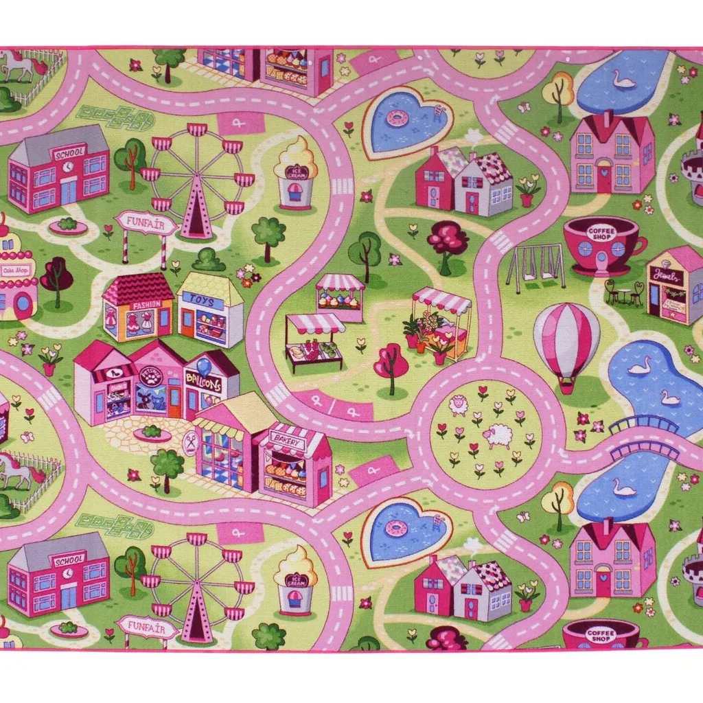 Covor de joacă copii Rebel Roads Fairground Life, 95 x 200cm, sigur și educativ, cu certificare OEKO-TEX. Stimulează imaginația prin design interactiv de parc de distracții.
