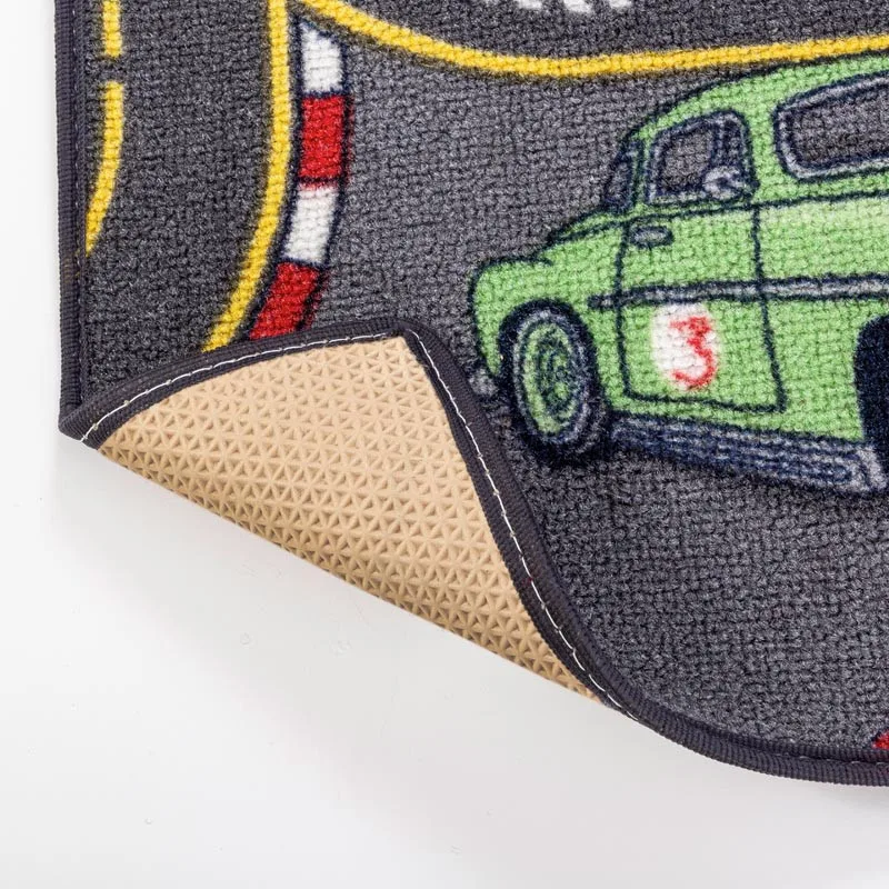 - Plasarea optimă a covorului: Alegeți o zonă cu iluminare naturală suficientă, departe de radiatoare sau surse directe de căldură care ar putea afecta latexul din baza antiderapantă. Asigurați-vă că există spațiu suficient în jurul covorului pentru ca copiii să se miște liber și să acceseze toate părțile traseului de curse fără obstacole.