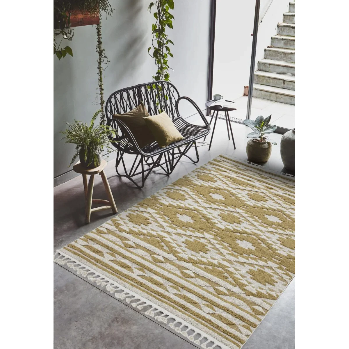 Covor ocru traditional model geometric 3d Taza Ochre 15 mm 200×290 cm TAZA2002900002