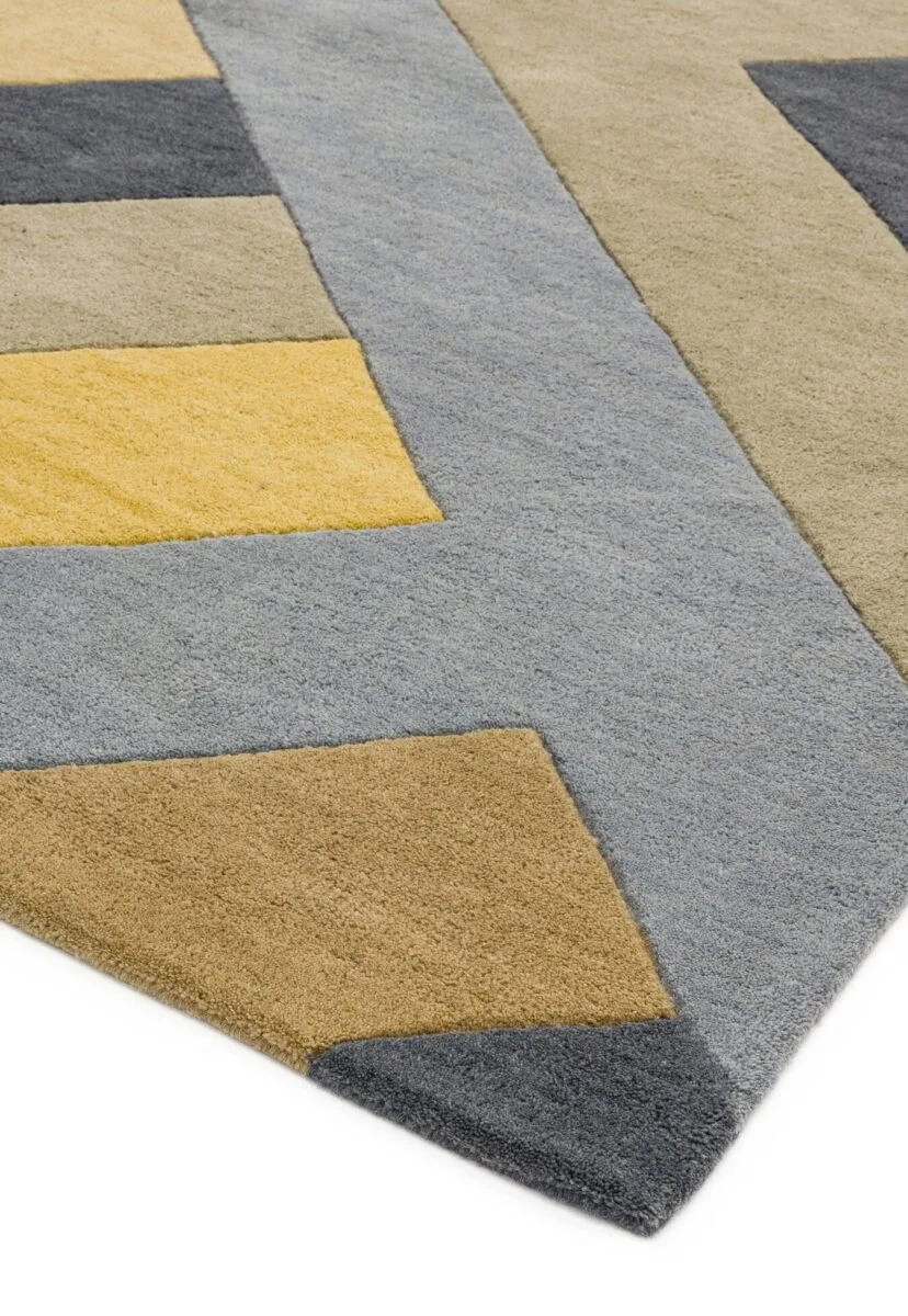Covor pufos din lână lucrat manual modern model geometric abstract Reef Big Zig Ochre Grey 10 mm 120×170 cm REEF1201700002