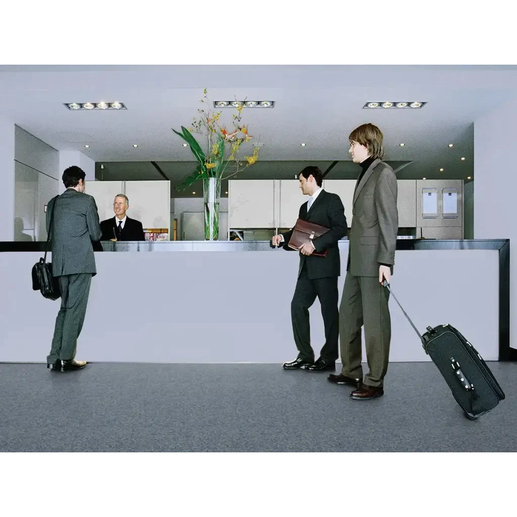 Acest covor PVC se remarcă prin grosimea totală de 2,2 mm și stratul de uzură de 0,5 mm, oferind o rezistență excepțională la abraziune. Stratul suport din spumă poliuretanică armată cu fibră de sticlă conferă stabilitate dimensională și flexibilitate remarcabilă, eliminând riscul de fisuri sau deformări în timp. Izolația fonică de 8 dB certificată ISO 717-2 reduce semnificativ zgomotul de impact, creând un mediu de lucru mai confortabil și mai liniștit.