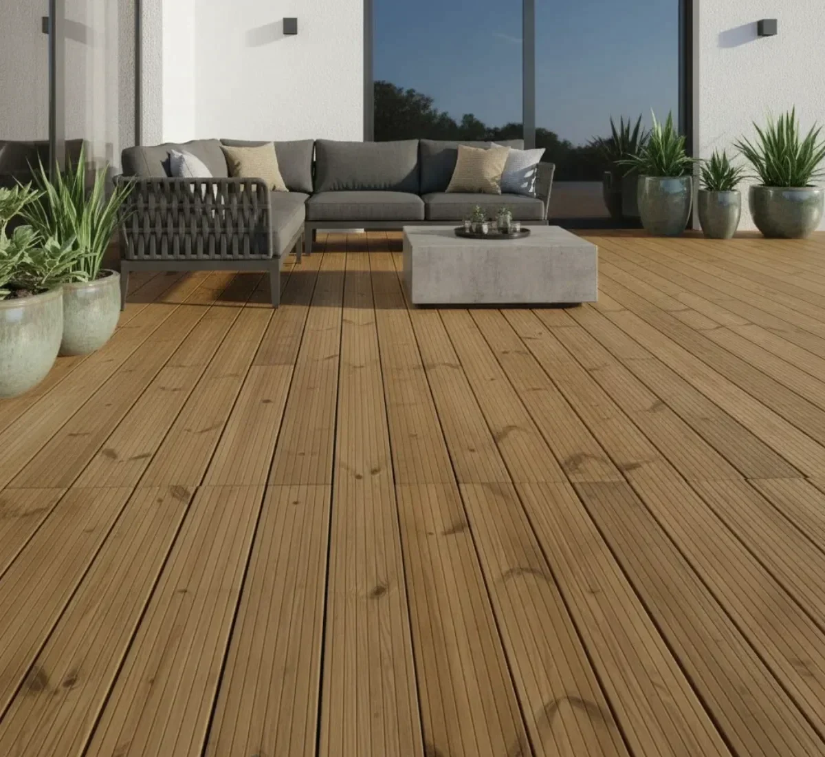 Amenajarea unei terase exterioare cu Deck pin termotratat neted auriu-brun reprezintă o investiție inteligentă în confortul locuinței și valoarea proprietății, oferind un spațiu durabil, ecologic și estetic remarcabil. Aspectul său natural și senzația caldă la atingere transformă orice grădină într-un sanctuar personal.Contactează echipa noastră de specialiști pentru o consultanță gratuită legată de necesarul de materiale și accesorii.