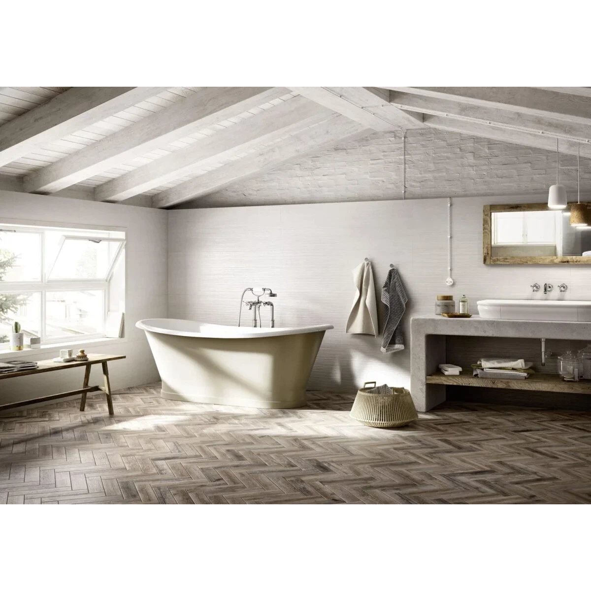 Un format 40×120 în grosime subțire, disponibil în cinci culori naturale și două structuri 3D care conferă pereților dinamism și continuitate vizuală. O colecție inovatoare care a primit premiul ADI (Asociația Italiană de Design Industrial) Ceramics Design Award 2015.