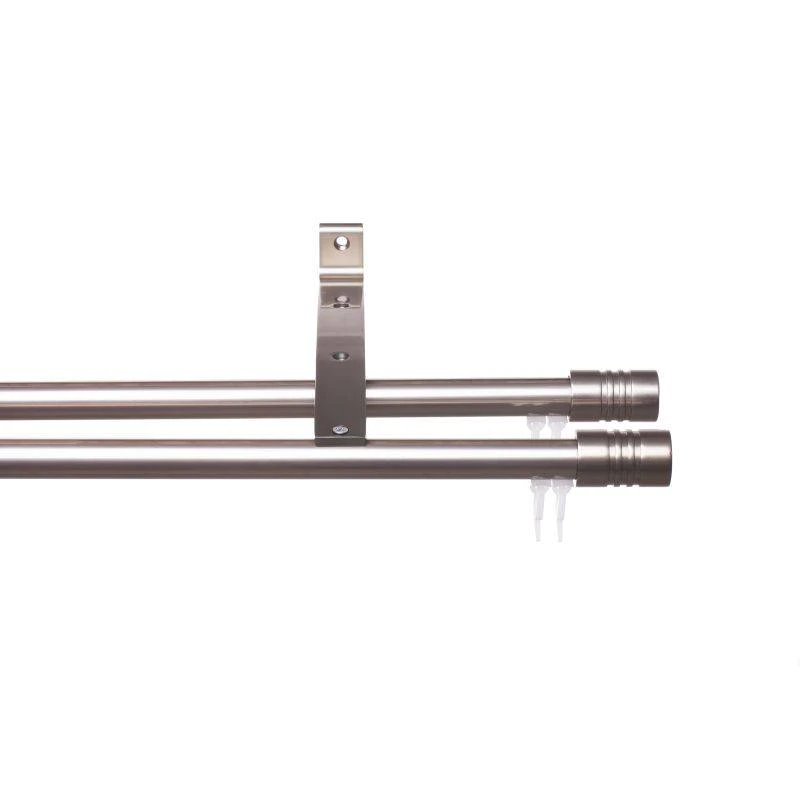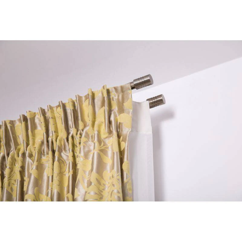 Galeria dublă cu consolă triplă ELR 2000 din aluminiu cu finisaj inox și capete decorative striate reprezintă o soluție practică pentru montarea perdelelor și draperiilor atunci când ai calorifer sub fereastră. Această galerie are un design modern, cu profil din aluminiu ușor dar rezistent, care permite fixarea elegantă a perdelelor la 15 cm și a draperiilor la 22 cm distanță față de perete.