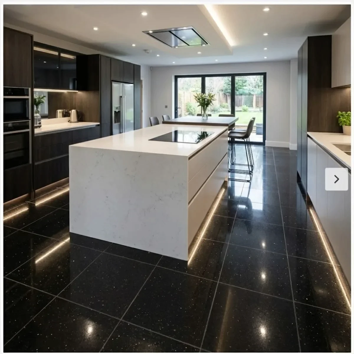Etichete: granit negru lustruit, placaj granit 30×30, Black Galaxy România, piatră naturală interior, granit bucătărie, placaj granit negru, materiale amenajări interioare, granit rezistent