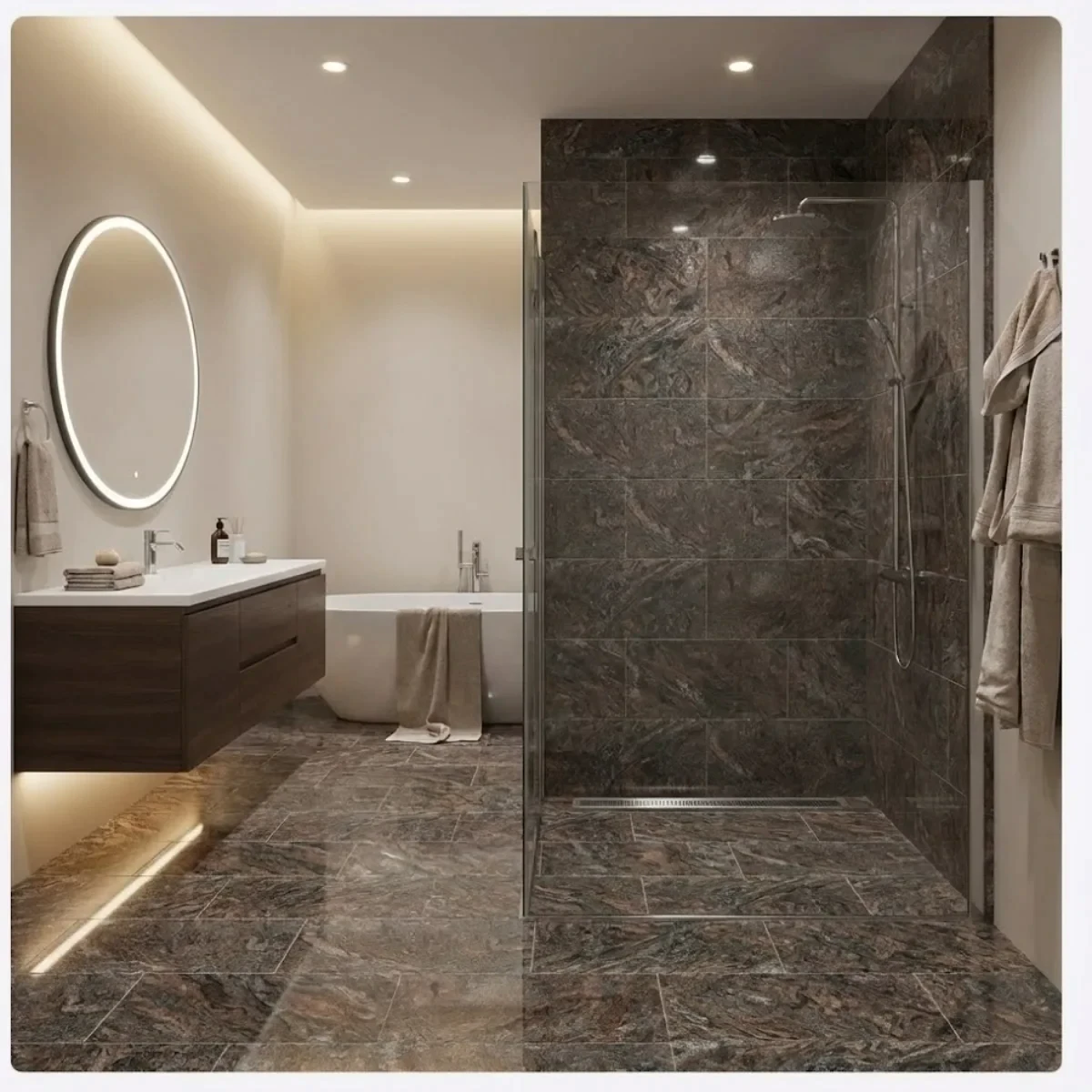 - Este suprafața lustruită alunecoasă în baie?Suprafețele lustruite devin alunecoase atunci când sunt umede, de aceea necesită precauție în zonele de duș sau baie. Pentru zonele cu umiditate ridicată, se recomandă utilizarea unor covorașe de baie aderente sau aplicarea unui tratament profesional antiderapant invizibil, care crește coeficientul de frecare fără a afecta luciul pietrei.