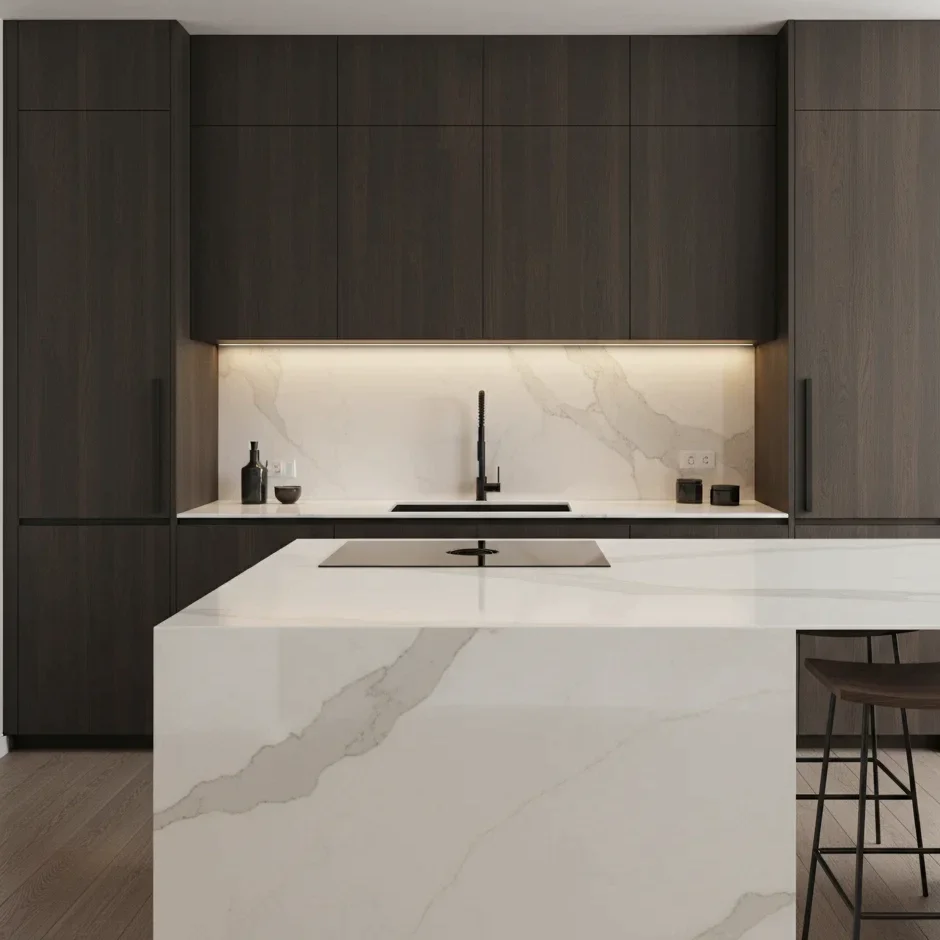 În epoca reproducerii digitale a naturii, nervurile și variațiile subtile de nuanță ale celor mai selecte marmure primesc o nouă viață, cu o claritate și o durabilitate mai mari decât cele originale. De la Verde Aver din Val d’Aosta la Calacatta Vena Vecchia din Toscana, de la Grigio Carnico la exoticul Sahara Noir, noi surse de inspirație se alătură acum marmurelor clasice din colecția Marble Look, alături de interpretări proaspete ale terasei venețiene.