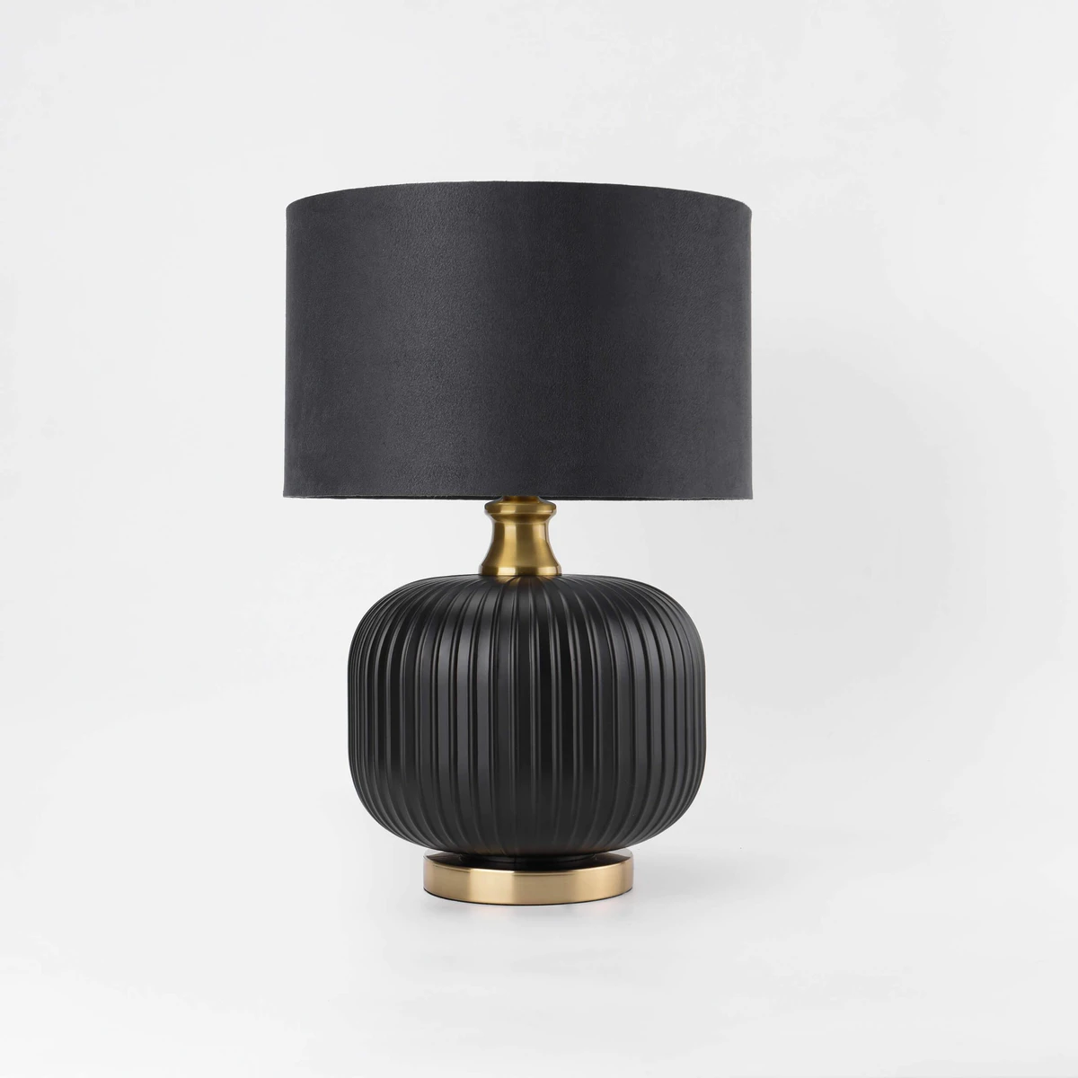 Etichete:lampă de masă neagră, iluminat birou elegant, design modern clasic, Light Prestige România, corpuri iluminat interior, lampă birou sticlă canelată