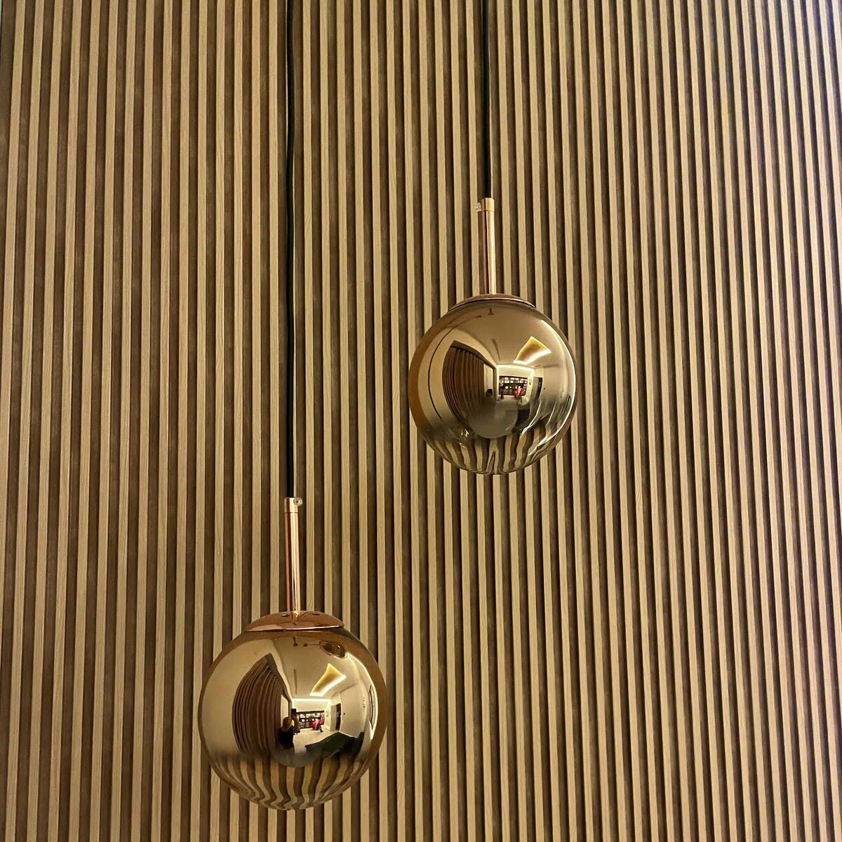 Lampa suspendată unică Palla, cu design elegant din sticlă aurie, transformă orice spațiu într-un ambient sofisticat. Abajurul clasic în formă de sferă conferă un aer timeless locuinței dvs., fiind alegerea perfectă pentru living sau sufragerie. Deși impresionantă și în formă individuală, puteți crea o compoziție luminoasă unică prin combinarea mai multor lămpi din colecția Palla.