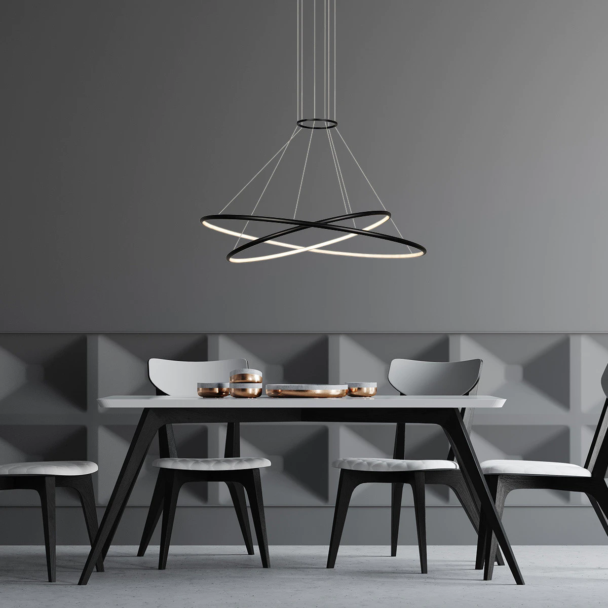 Etichete:lampă suspendată contemporană, LED CCT Halifax, iluminat adaptat temperatura culoare, corpuri iluminat moderne negre, Light Prestige suspendate, design cercuri concentrice metalice