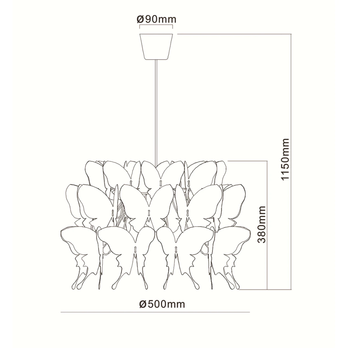 lampă suspendată roz închis E27 este un corp de iluminat pentru interior cu abajur format din fluturi din acril, o piesă decorativă care folosește soclu E27 și creează lumină ambientală plăcută pentru dormitor sau bucătărie. Variantele cu același design, dar în alte nuanțe, îți oferă libertate estetică, iar montajul pe rețea la 230V asigură compatibilitate cu cele mai răspândite becuri cu filet E27. Oferă o atmosferă caldă și prietenoasă, în timp ce păstrează un accent vizual clar în decor.