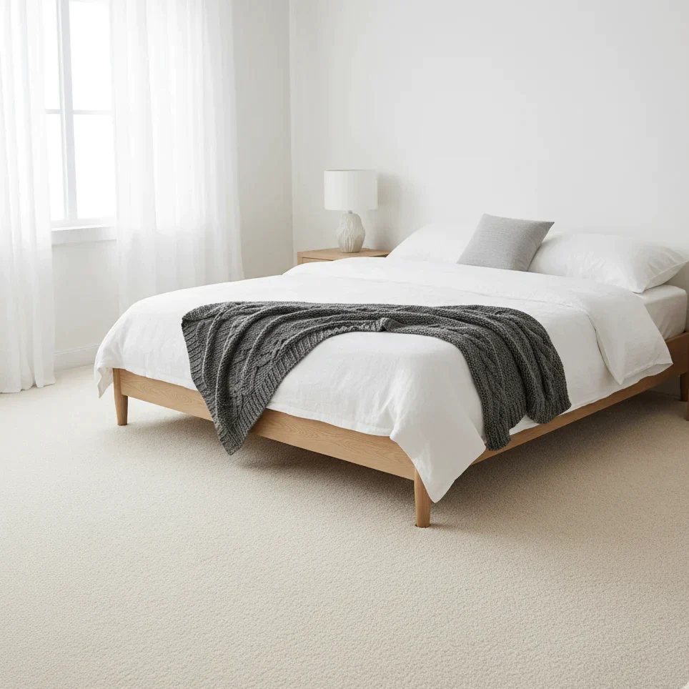 - Se murdărește mai ușor o mochetă crem decât una închisă la culoare? Tonul crem al acestei mochete este selectat special pentru a camufla praful și firele mici, fiind mai puțin exigent în întreținere decât variantele albe pure. Textura frisé contribuie suplimentar la ascunderea murdăriei superficiale.