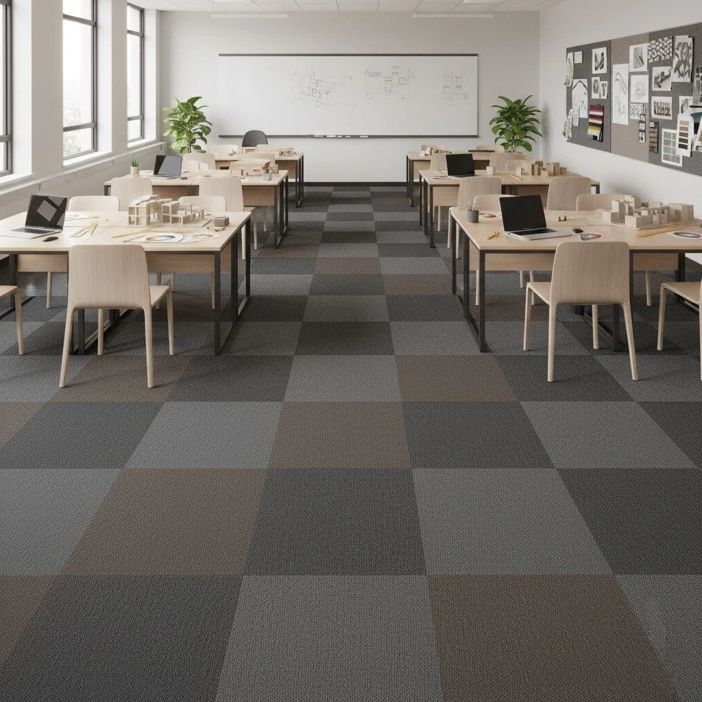 - Cât timp rezistă mochetea dale la traficul intens dintr-un birou cu peste 100 de angajați? Datorită clasificării EN 1307 clasa 33 pentru utilizare comercială intensivă și construcției din nailon solution dyed, această mochetă este concepută să reziste minimum 10-15 ani în condiții de trafic comercial intens, menținându-și aspectul și funcționalitatea chiar și în zonele cele mai solicitate.
