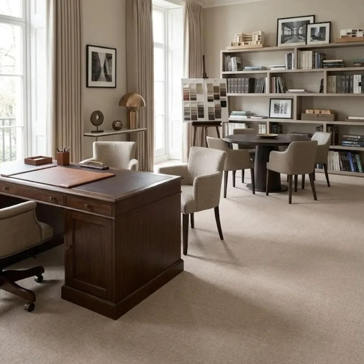Suprafața din poliamidă 100% IMPREL asigură rezistență excepțională la uzură prin deformarea permanentă, menținând aspectul uniform chiar și după ani de utilizare zilnică intensivă. Greutatea totală de 1.150 grame pe metru pătrat confirmă calitatea construcției, oferind o senzație substanțială sub picioare care comunică premium și atenție la detalii. Textura mătăsoasă a firului tăiat velur creează jocuri subtile de lumină care adaugă profunzime vizuală spațiului fără a distrage atenția de la mobilier sau elemente arhitecturale. Culoarea bej 34 din paleta Altona este suficient de versatilă pentru a complementa atât tonuri calde de lemn cât și finisaje contemporane în gri sau alb.