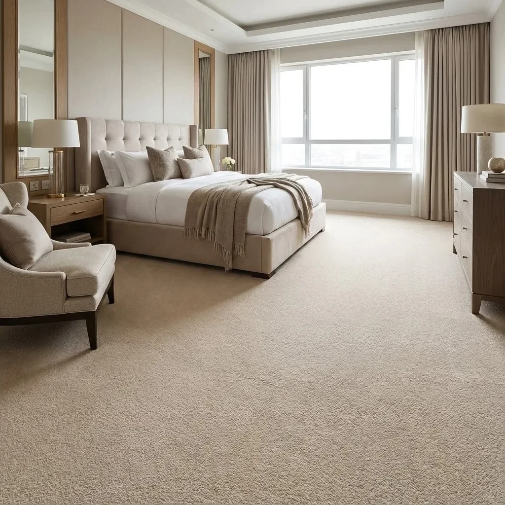 - Cum se comportă mochetă groasă bej-gri în camerele cu umiditate fluctuantă? Suportul secundar twin back oferă stabilitate dimensională superioară, prevenind contractarea sau expandarea materialului la variațiile normale de umiditate din locuințe. Totuși, mochetă nu este recomandată pentru băi, bucătării sau alte spații unde umiditatea constantă depășește 70%, deoarece fibrele de poliamidă pot absorbi umiditatea din aer și pot dezvolta mirosuri neplăcute dacă nu se usucă complet între episoadele de umiditate. Pentru camerele de la parter cu risc de infiltrații sau condensare, asigură-te că substratul are o barieră eficientă împotriva umezelii ascendente și că ventilația este adecvată pentru a menține umiditatea relativă între 40-60%.