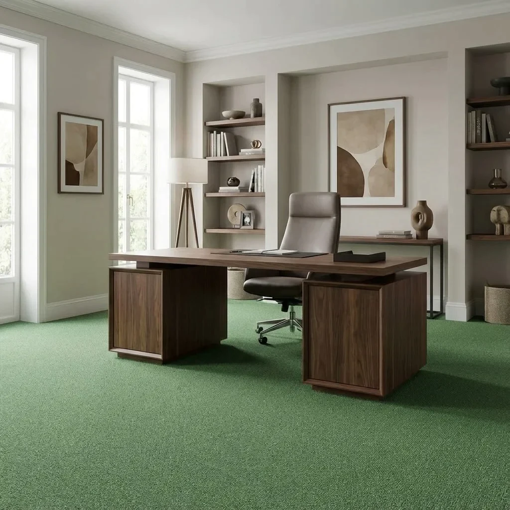 Culoarea verde vibrantă a acestei mochete se integrează armonios în conceptele de design contemporan, completând atât paleta de culori neutre, cât și accentele cromatice îndrăznețe. În spațiile de birou, se asociază frumos cu mobilierul din lemn natural sau cu accente metalice, creând o atmosferă de lucru dinamică și revigorantă.