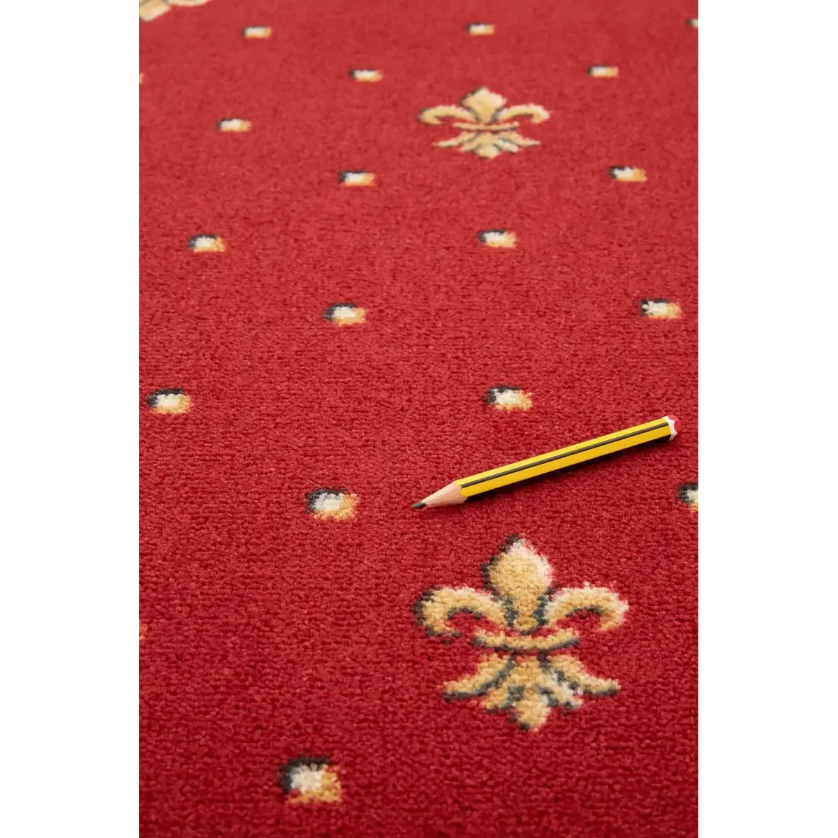 Caracteristici mocheta trafic intens rosie cu model Fleur de Lys