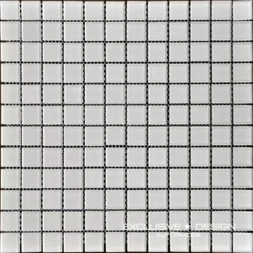 Caracteristici mozaic din sticlă alb cu pătrate mici lucioase