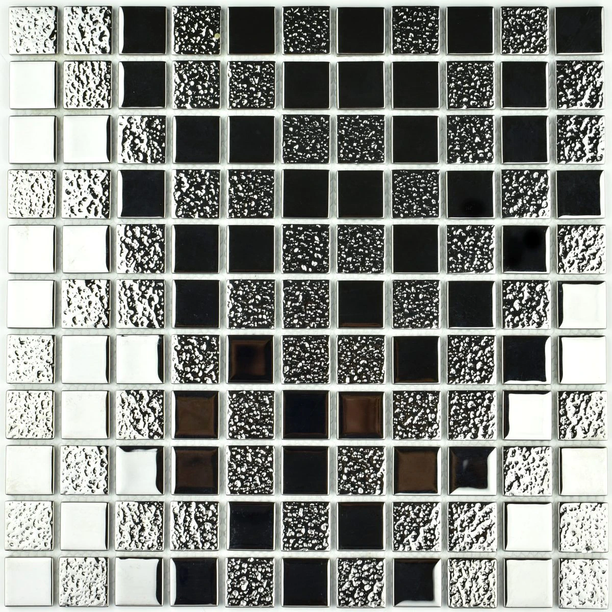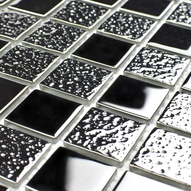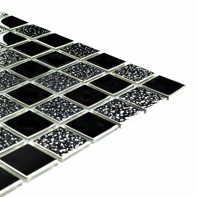 Mozaic sticlă argintiu cu tonuri gri și negre 300x300x4 mm Midas