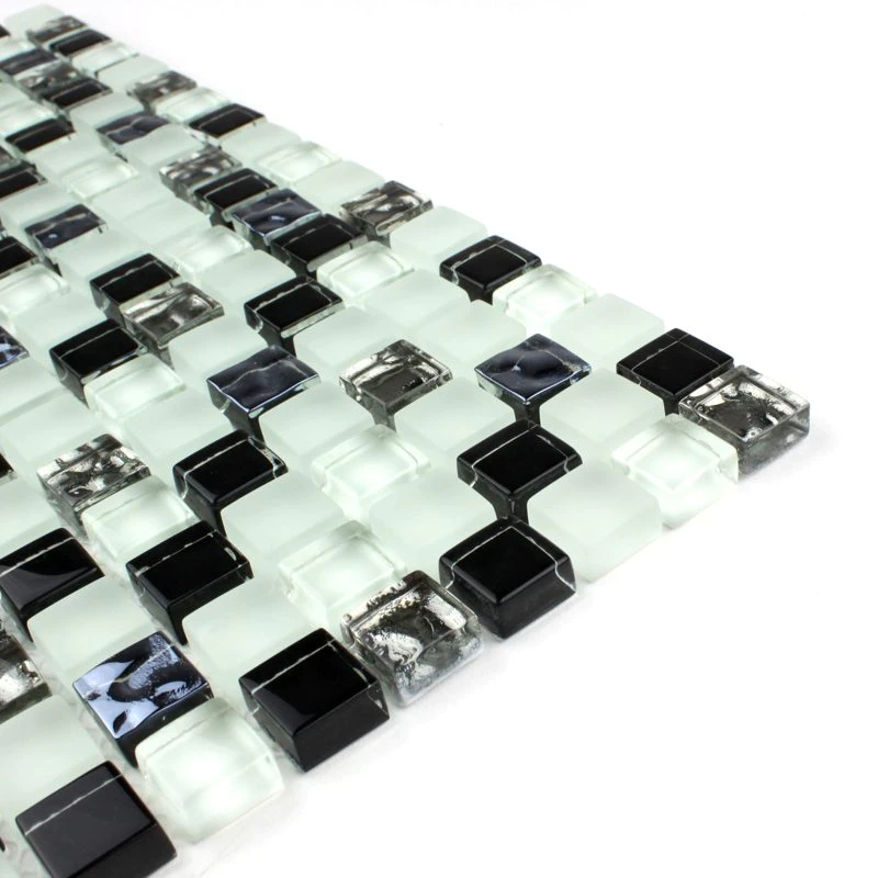 Structura tricoloră alb-negru-argintiu a mozaicului creează un contrast vizual puternic care funcționează în orice stil de amenajare. Placuțele de 14×14 mm sunt suficient de mici pentru a oferi detaliu fin, dar suficient de mari pentru a se distinge individual, creând un pattern geometric modern care nu copleșește vizual. Plasa de suport din fibră de sticlă asigură stabilitate în timpul montajului și permite distanțarea perfectă între tesere, facilitând aplicarea uniformă a adezivului și a chitului de rosturi.