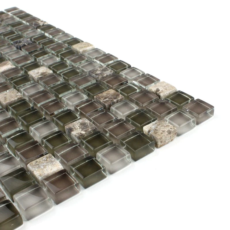 Mozaic sticlă și piatră gri cu inserții marmură 300x300 mm Midas - Mozaic din sticla