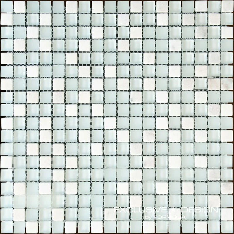 Mozaic sticlă și piatră alb cu aspect mixt Midas 300x300 mm - Mozaic din sticla