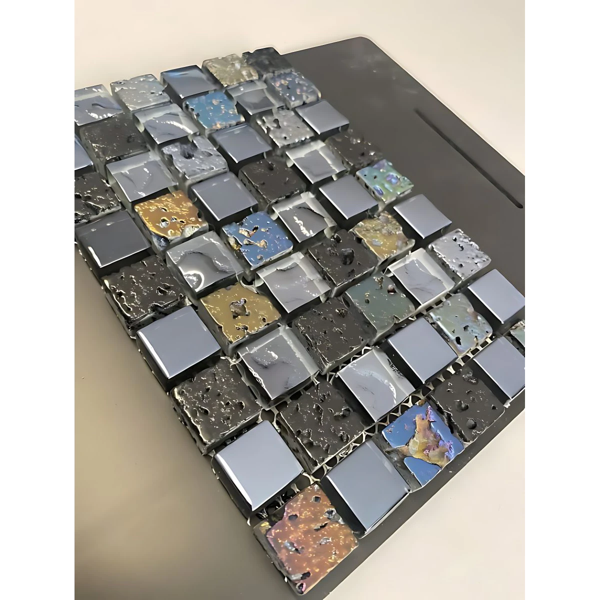 Mozaicul multicolor 3D iridescent Midas transformă pereții obișnuiți în suprafețe dinamice care captează lumina și adaugă profunzime spațiului tău, oferindu-ți libertatea să creezi un decor personalizat care reflectă stilul tău de viață și pasiunea pentru detaliile de calitate.