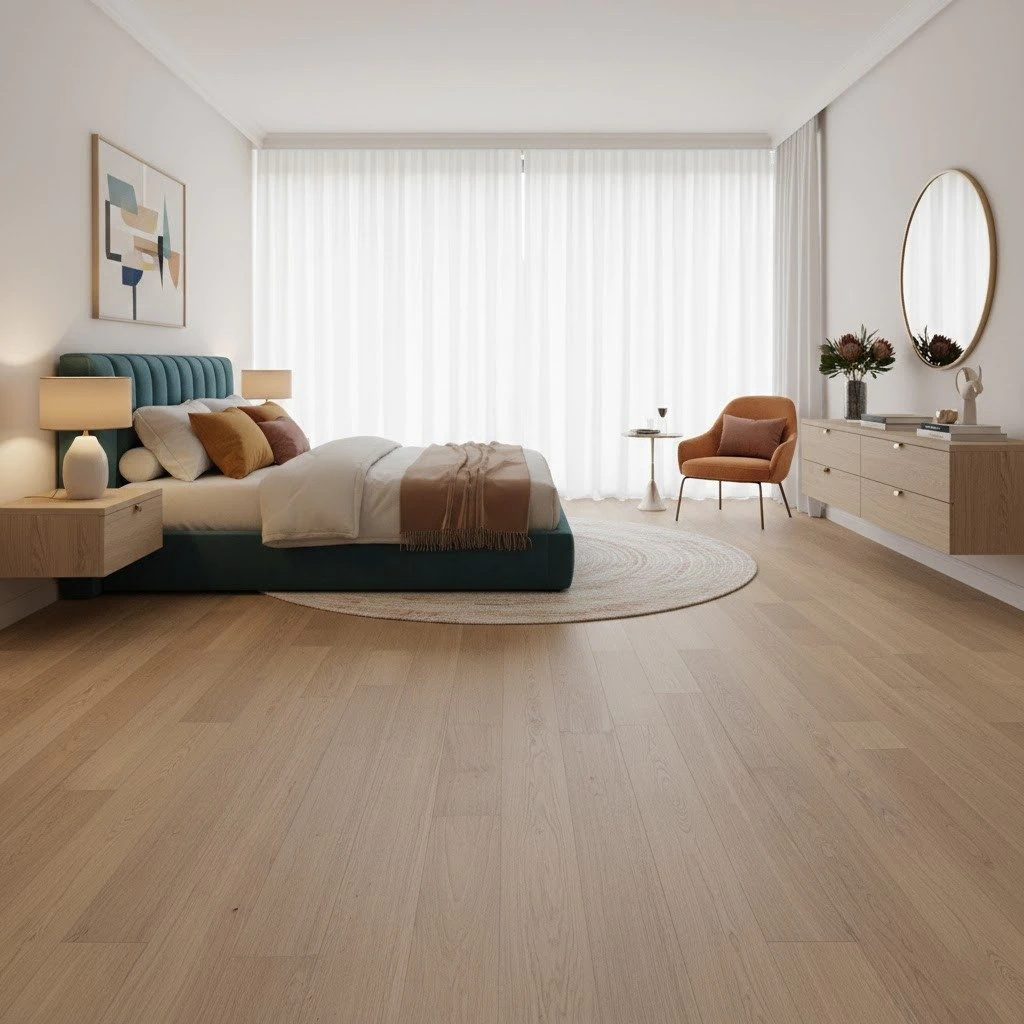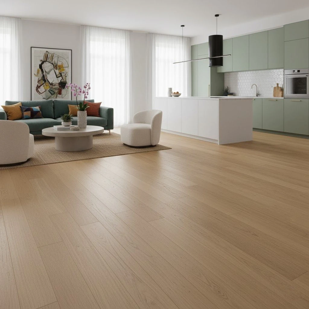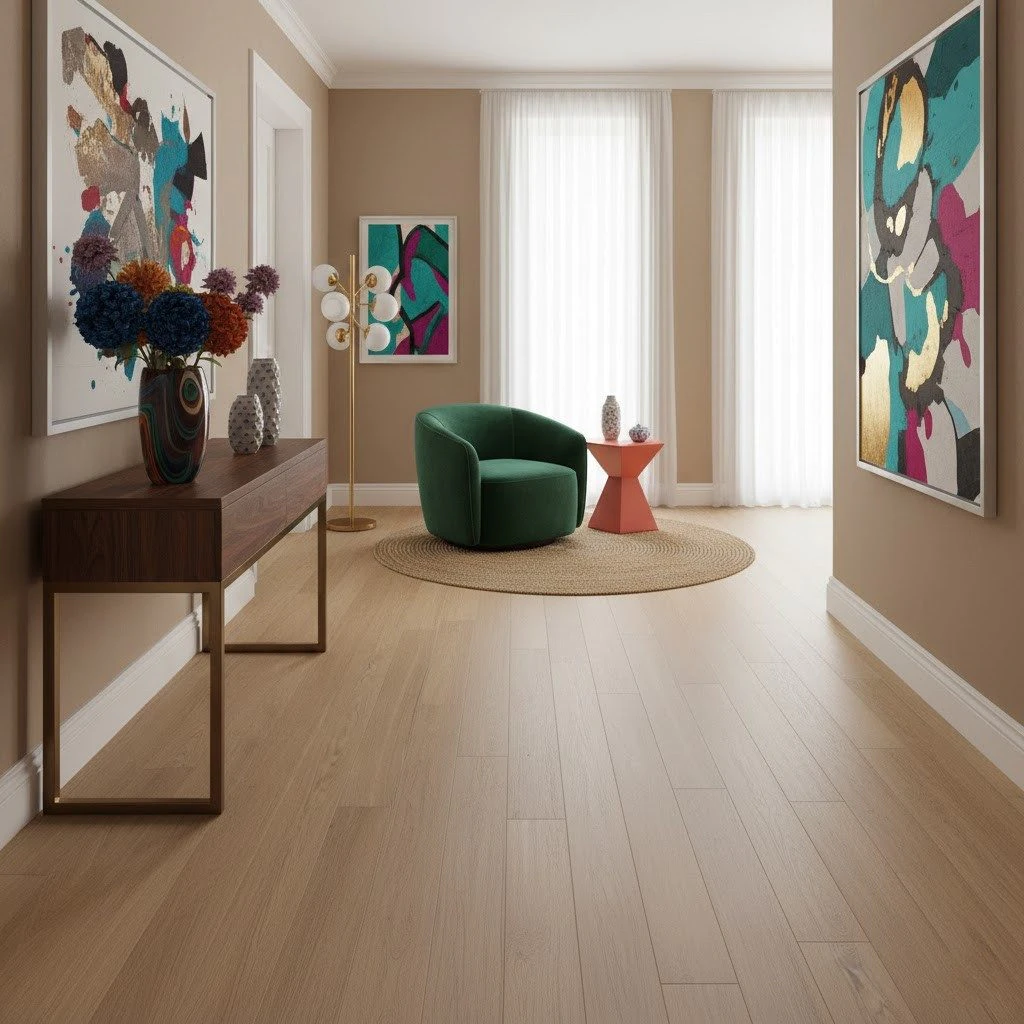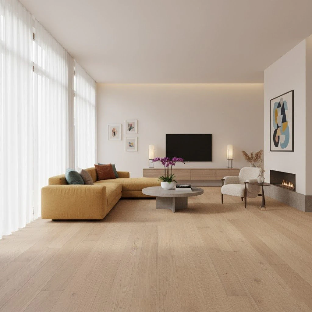 Arhitecții de interior evidențiază versatilitatea estetică a acestui parchet: “Nuanța albă delicată și textura periată subtil creează o bază neutră ce se integrează armonios în orice stil de amenajare, de la cel contemporan la cel tradițional”, explică designerii de interior cu experiență în amenajări rezidențiale premium.