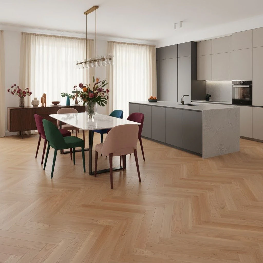 Lemnul de cireș se potrivește atât în interioare clasice, cât și în cele moderne minimaliste. Pentru stilul scandinav, parchetul poate fi complementat cu textile în culori pastelate și mobilier din lemn deschis. În cazul unui design contemporan, contrastul cu elemente metalice negre sau gri antracit creează un aspect sofisticat și actual.