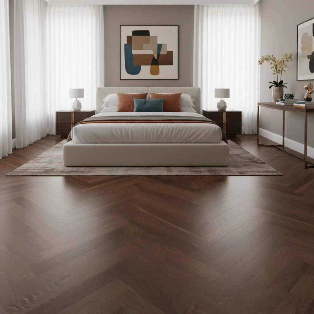 În living, acest tip de parchet adaugă profunzime și un aer sofisticat. În dormitor, conferă senzația de intimitate și relaxare, fiind plăcut la atingere chiar și desculț. Pentru spațiile comerciale – showroom-uri, birouri, restaurante – acest model susține imaginea unui brand care investește în calitate și bun gust.