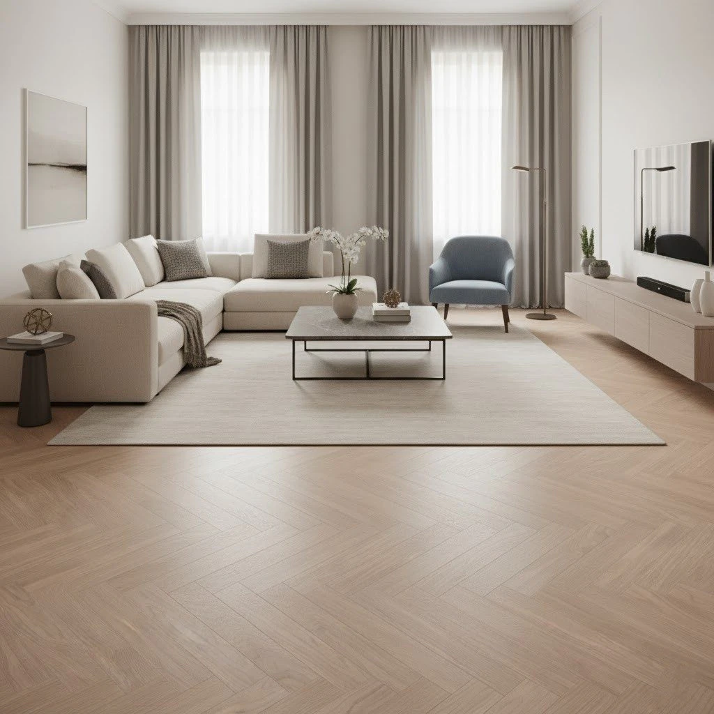 Parchetul stejar albit natural chevron Boen Oak White Nature transformă orice spațiu într-un interior luminos și sofisticat, oferind perfect echilibrul între eleganța clasică și practicitatea modernă. Cu o durabilitate remarcabilă și un aspect care nu se demodează niciodată, această alegere reprezintă o investiție înțeleaptă pentru confortul și valoarea casei tale. Comandă acum pentru a beneficia de calitatea superioară Boen și de serviciile noastre complete de consultanță și montaj profesional.
