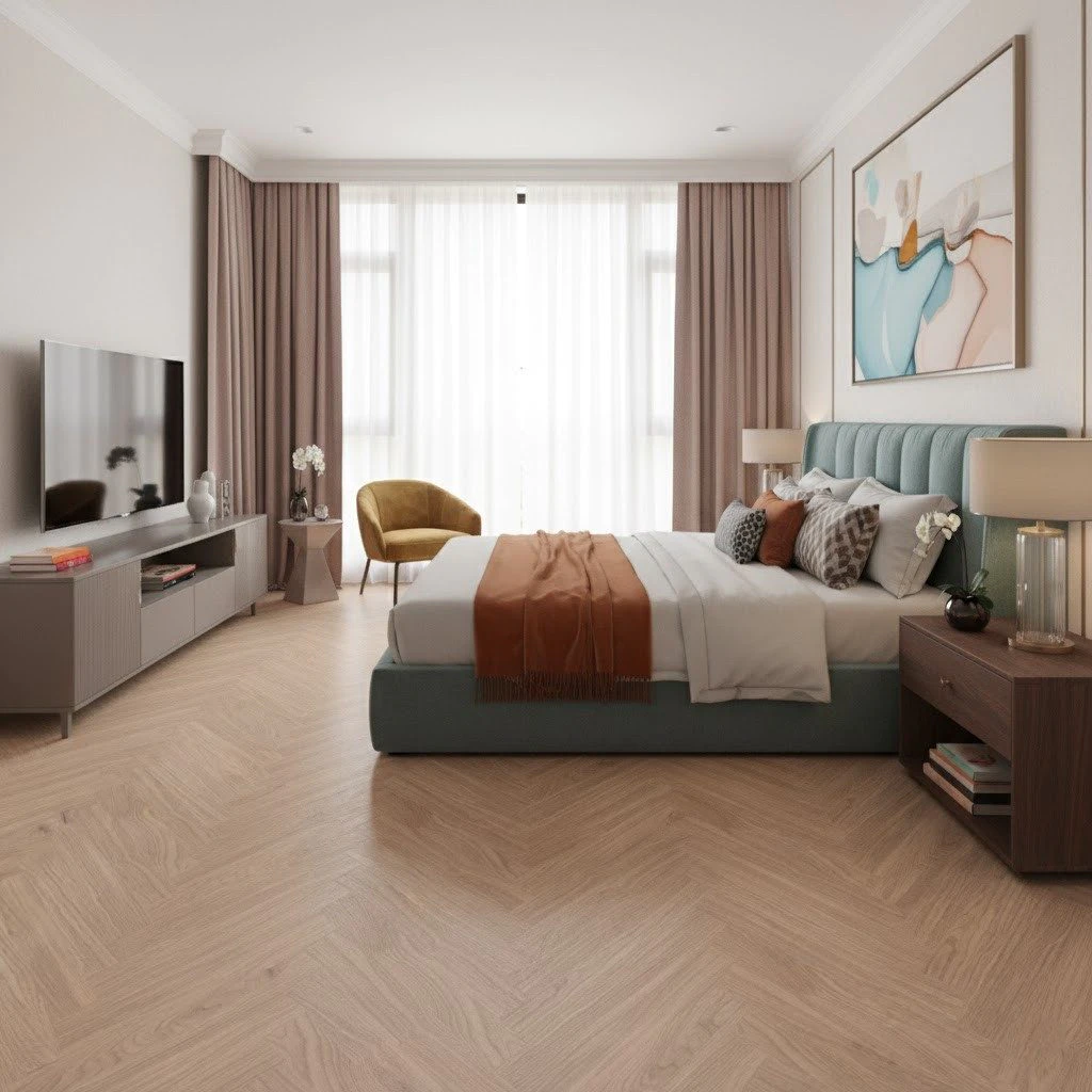 Parchetul stejar albit natural chevron își găsește locul în cele mai diverse concepte de amenajare, adaptându-se cu eleganță la personalitatea fiecărui spațiu. Nuanța albită delicată reflectă lumina naturală, creând o atmosferă aerisită și primitoare, în timp ce textura naturală a stejarului adaugă căldura și autenticitatea necesare unui cămin confortabil.
