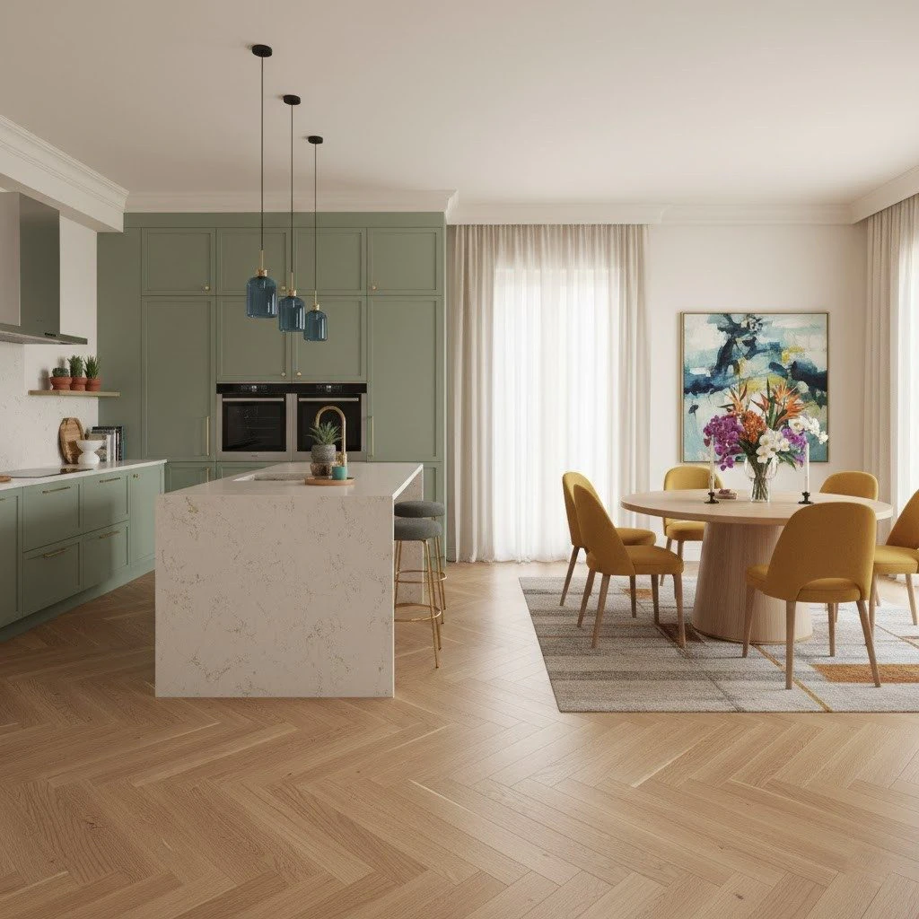 Parchetul cu finisaj uleiat are câteva avantaje notabile față de cel lăcuit. În primul rând, permite lemnului să respire natural, ajutând la reglarea umidității din încăpere. De asemenea, este mai ușor de reparat în caz de zgârieturi minore – acestea pot fi tratate local, fără a fi nevoie de rașchetarea întregii suprafețe.