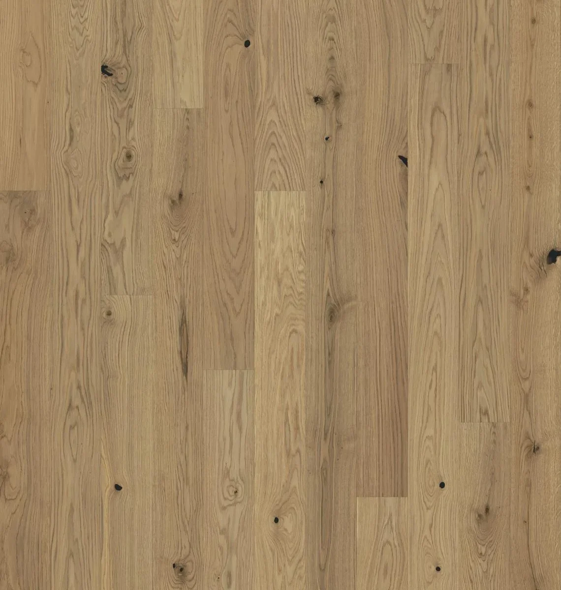 Parchetul stratificat Kahrs Canvas Etch se distinge prin calitatea materialelor folosite și prin detaliile care îl fac atât de căutat de către clienți. Stratul superior este realizat din stejar de calitate, care a fost atent selecționat pentru a oferi un aspect uniform și plăcut. Procesul de periere scoate în evidență venatura naturală a lemnului, creând o textură interesantă și autentică.