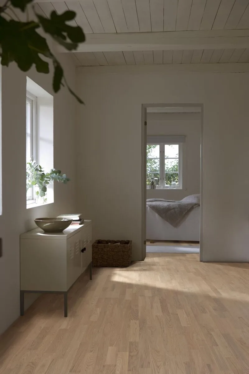 Etichete: parchet stejar alb, parchet triplu stratificat, parchet Kahrs, finisaj mat, design 3-strip, pardoseală lemn