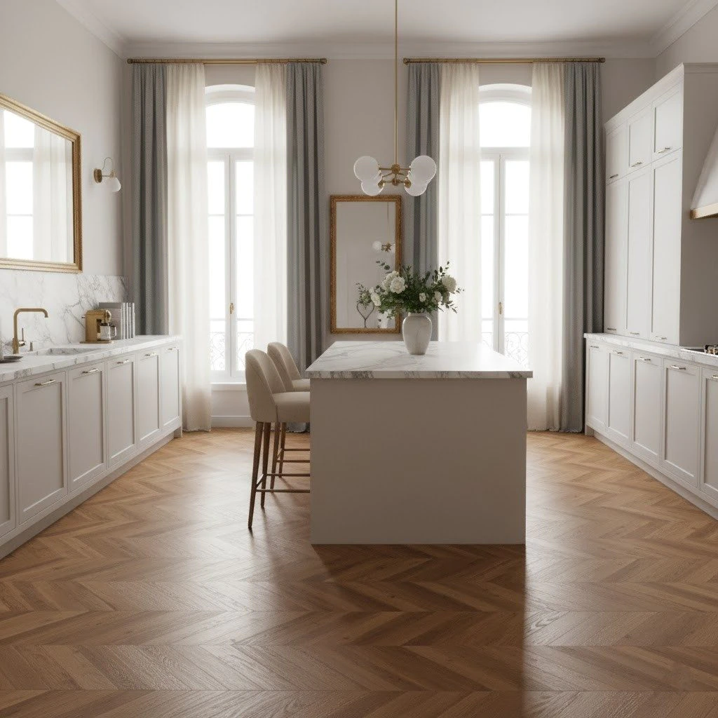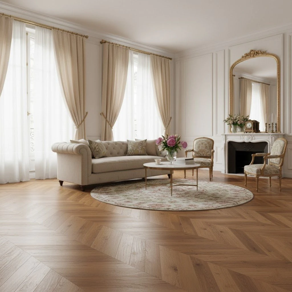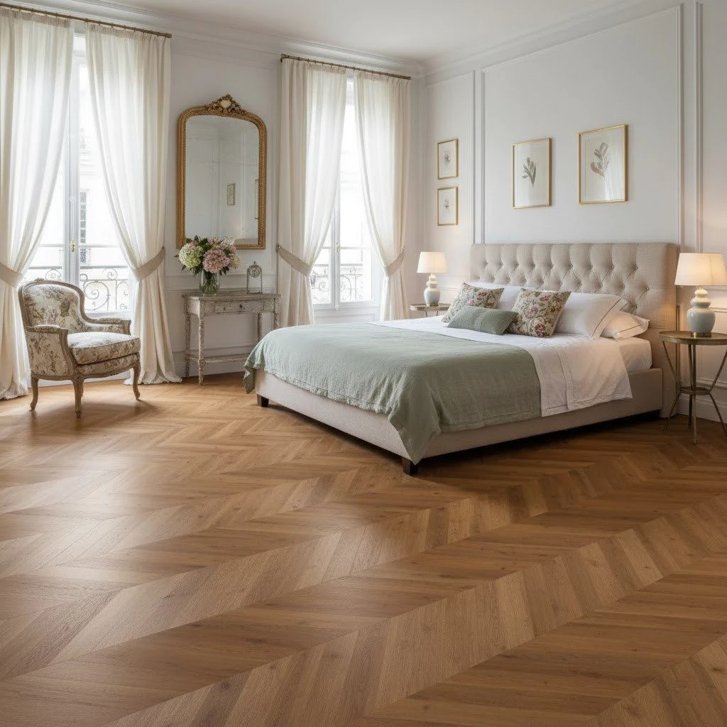 Designul versatil al parchetului Nantes Chevron il face potrivit pentru o gama larga de stiluri de amenajare interioara. In spatiile rezidentiale, poate fi utilizat cu succes in living, dormitor sau holuri, creand o atmosfera eleganta si primitoare. In bucatarii si bai, rezistenta sa la umiditate il face o alegere practica si estetica in acelasi timp.