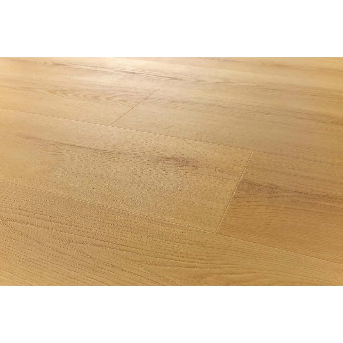 Stratul superior prezintă un design autentic de stejar virgin, cu nuanțe calde și naturale care recreează aspectul lemnului masiv. Textura suprafeței este atent prelucrată pentru a reproduce fidel desenul și nervurile caracteristice stejarului, oferind un aspect realist și plăcut la atingere. Tratamentul special aplicat împotriva umidității face acest parchet adecvat pentru utilizare în băi, bucătării sau alte zone predispuse la umezeală.