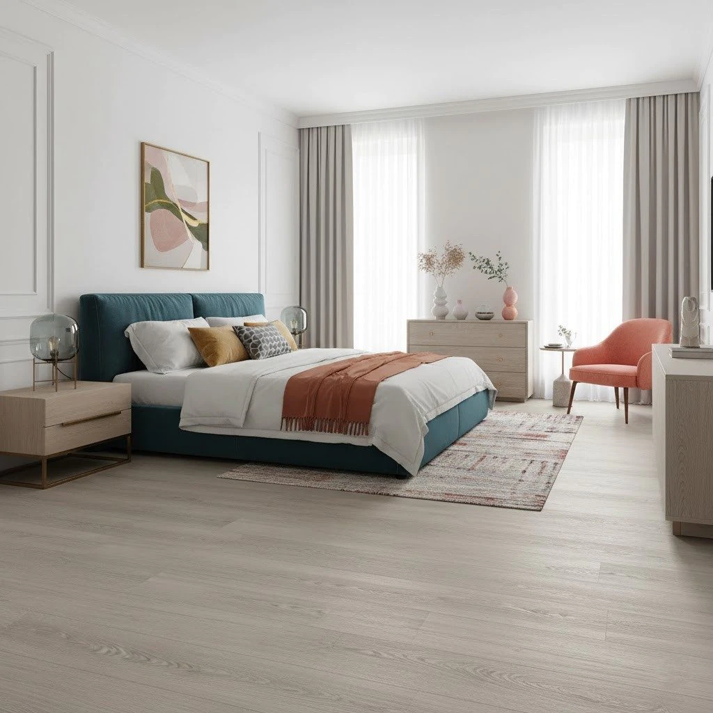 3. Protecția împotriva factorilor externi: Chiar dacă parchetul SPC are un grad mare de rezistență la razele UV, se recomandă utilizarea jaluzelelor sau a perdelelor pentru a preveni decolorarea pe termen lung în zonele expuse direct la soare. Pentru a menține un aspect curat, evită contactul direct cu vopseluri sau alte substanțe care ar putea păta suprafața, iar în zonele de intrare se sugerează așezarea unor covorașe de protecție.