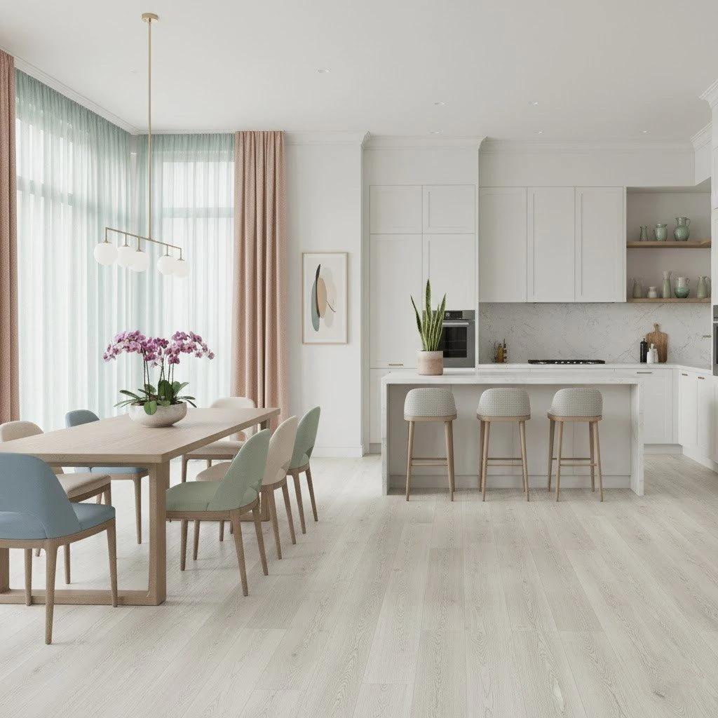 parchet spc pentru trafic intens, pardoseală impermeabilă stejar albit, podea rezistentă încălzire pardoseală, pardoseală click comercială, parchet pentru spații comerciale, podea spc imitație lemn, parchet arbiton cu sistem click