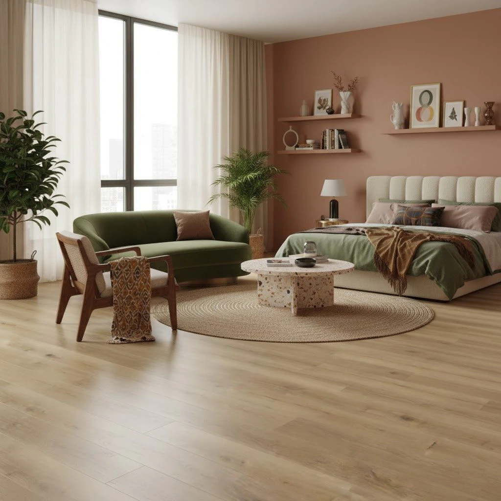 Parchetul SPC stejar natural cu noduri discrete modelul Perugia redefinește standardele pentru pardoselile moderne, combinând aspectul autentic și cald al lemnului cu performanța tehnică a compozitului de ultimă generație. Această podea de vinil cu sistem click este proiectată pentru a aduce o notă de inspirație italiană și confort în orice locuință. Textura naturală a lemnului, cu noduri fin definite, și nuanța caldă transformă instantaneu atmosfera, fiind o alegere potrivită pentru livinguri, dormitoare, holuri sau chiar bucătării.