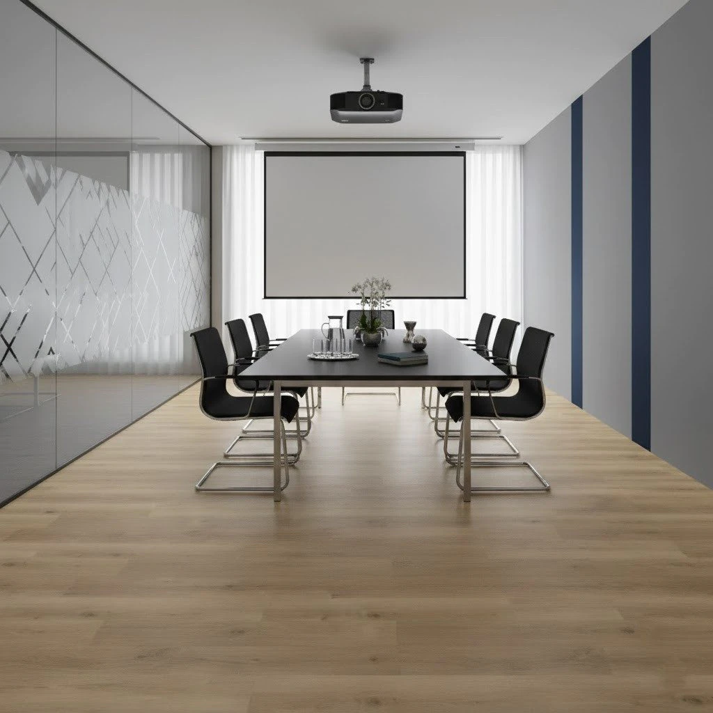Parchet SPC bej deschis cu aspect fin de lemn, Linen, Dawn 2 Dusk, VinylTechLab, 6x180x1220 mm