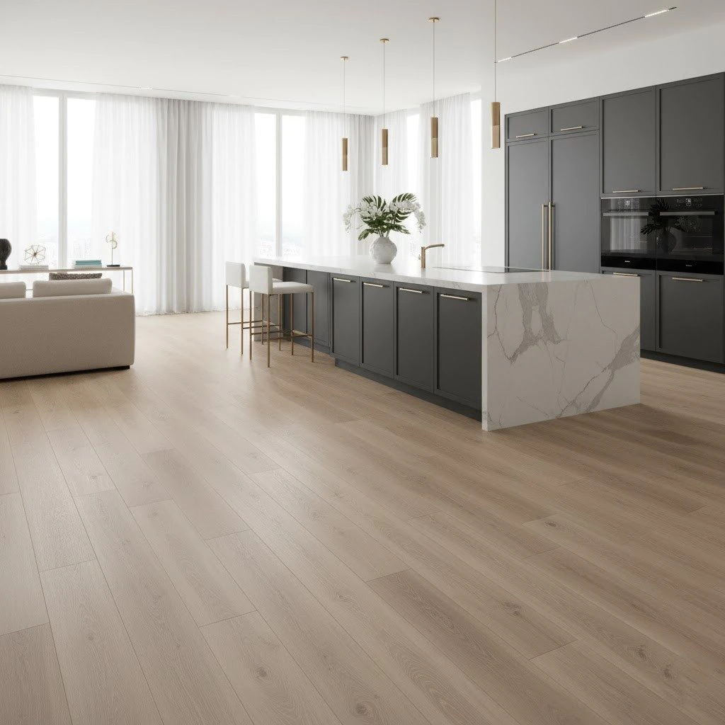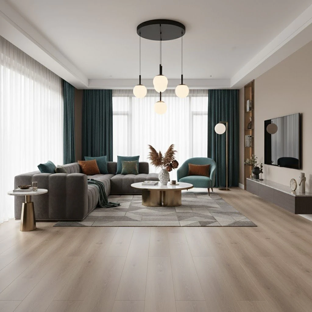 Parchetul SPC bej deschis cu textură realistă de lemn Woodlands Ivory redefinește standardele pardoselilor moderne pentru spațiile rezidențiale și comerciale din România. Această pardoseală de tip XL plank, cu o grosime totală de 7 mm, combină aspectul autentic și cald al lemnului natural deschis cu performanța tehnică superioară a compozitului SPC (Stone Polymer Composite). Este proiectat special pentru zone cu trafic intens, rezistând la umiditate, zgârieturi și uzură zilnică.